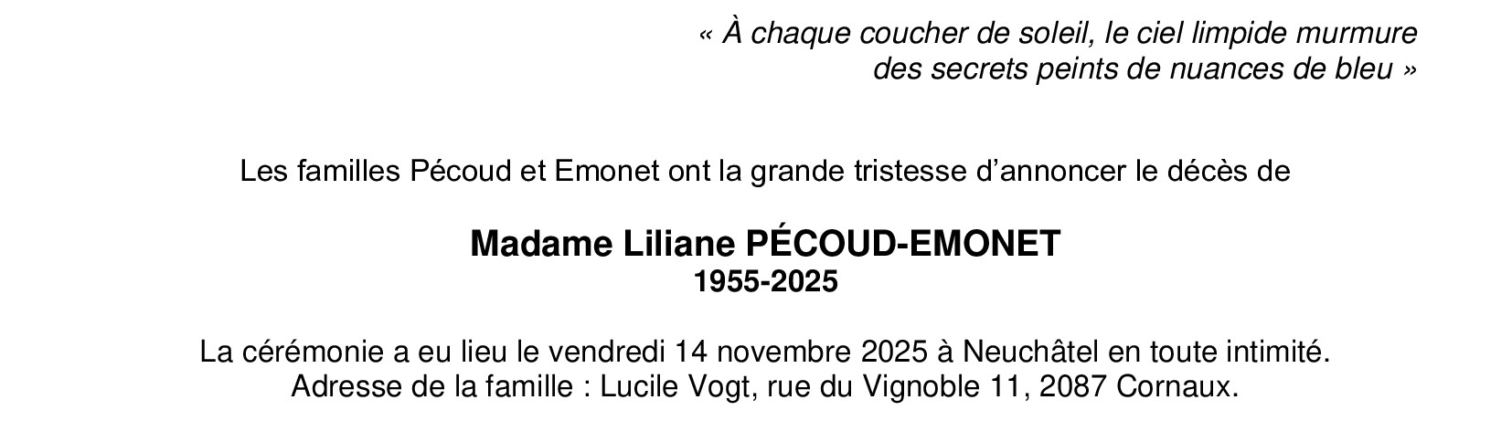 Madame Liliane PÉCOUD-EMONET
