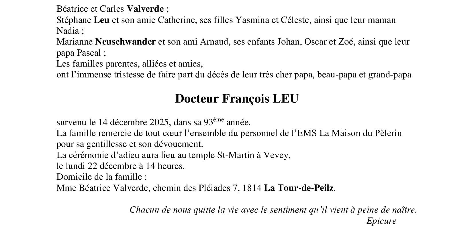 Avis mortuaire PFG