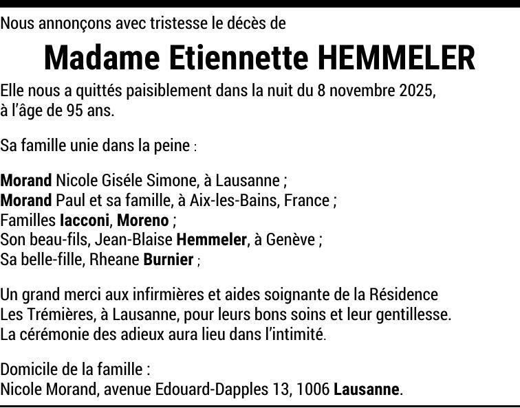 Madame Etiennette HEMMELER