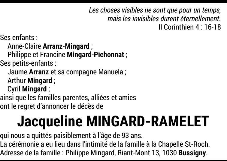 Madame Jacqueline MINGARD-RAMELET