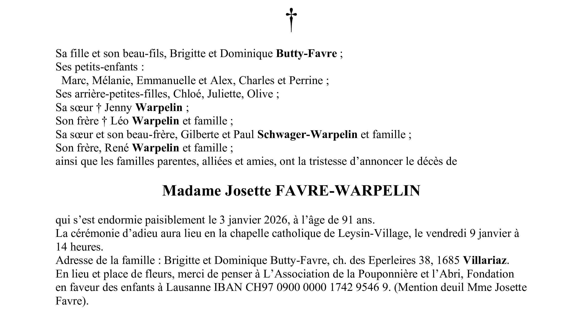 Madame Josette FAVRE-WARPELIN