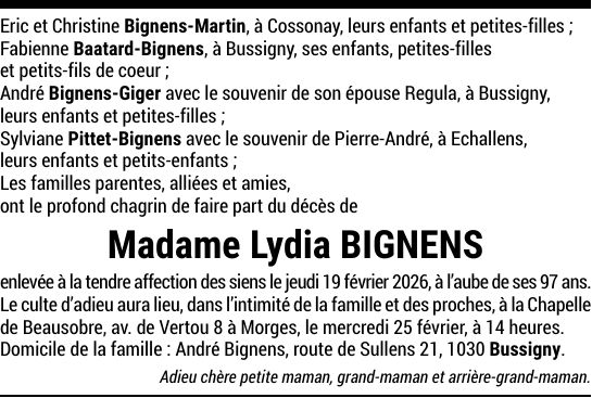 Madame Lydia BIGNENS