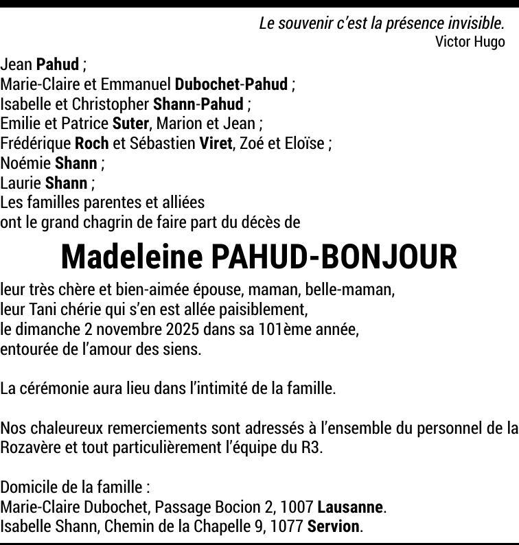 Madame Madeleine PAHUD-BONJOUR