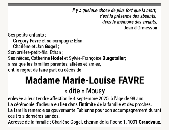 Madame Marie-Louise FAVRE
