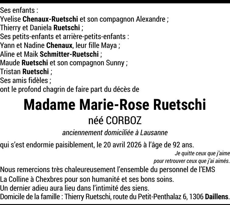 Madame Marie-Rose RUETSCHI-CORBOZ
