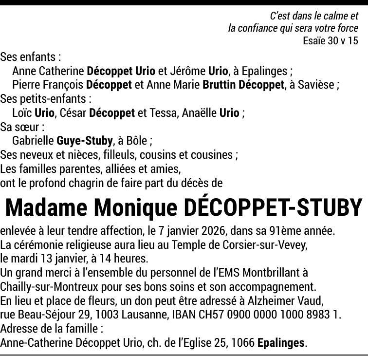 Madame Monique DÉCOPPET-STUBY