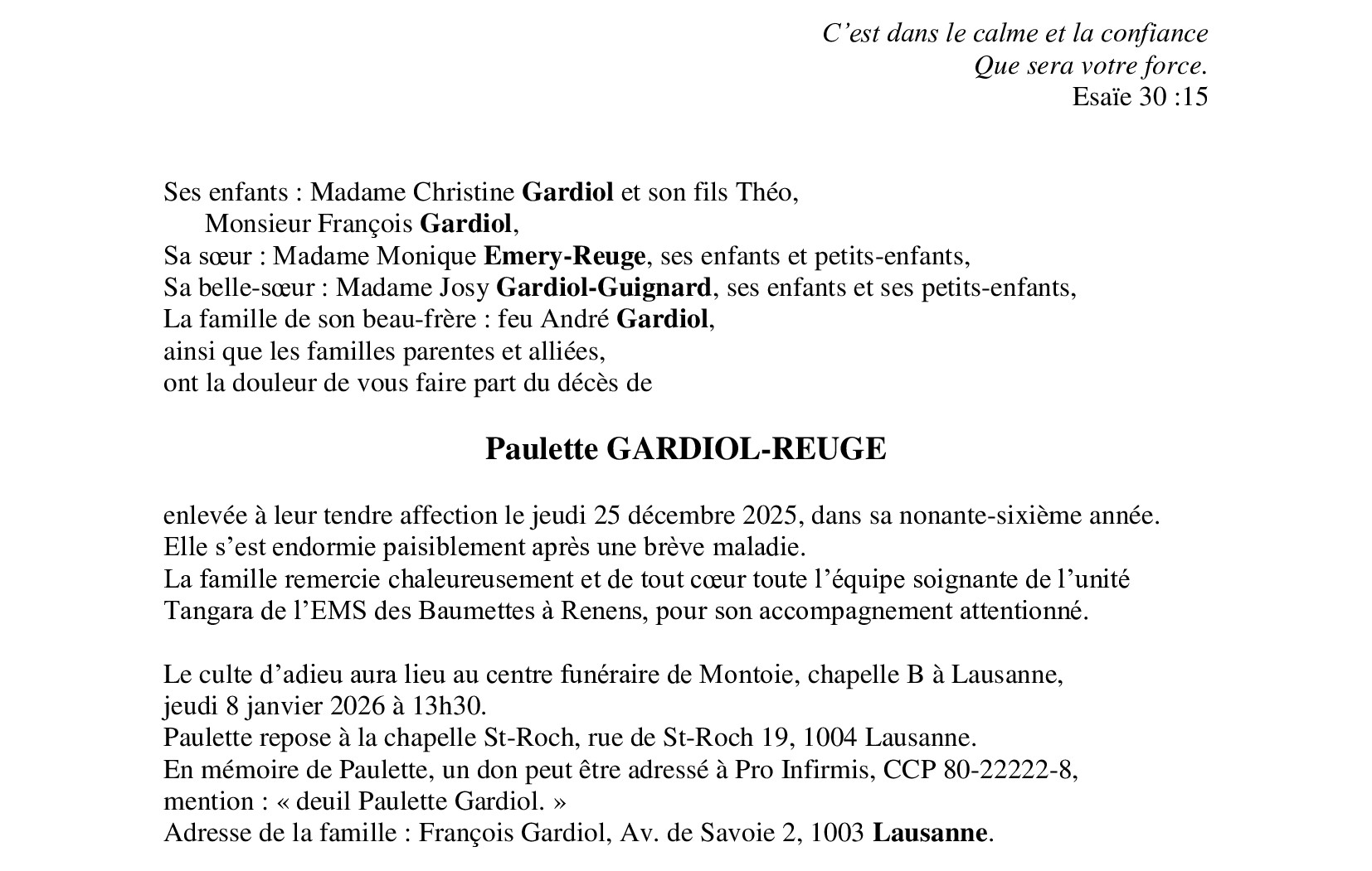 Avis mortuaire PFG
