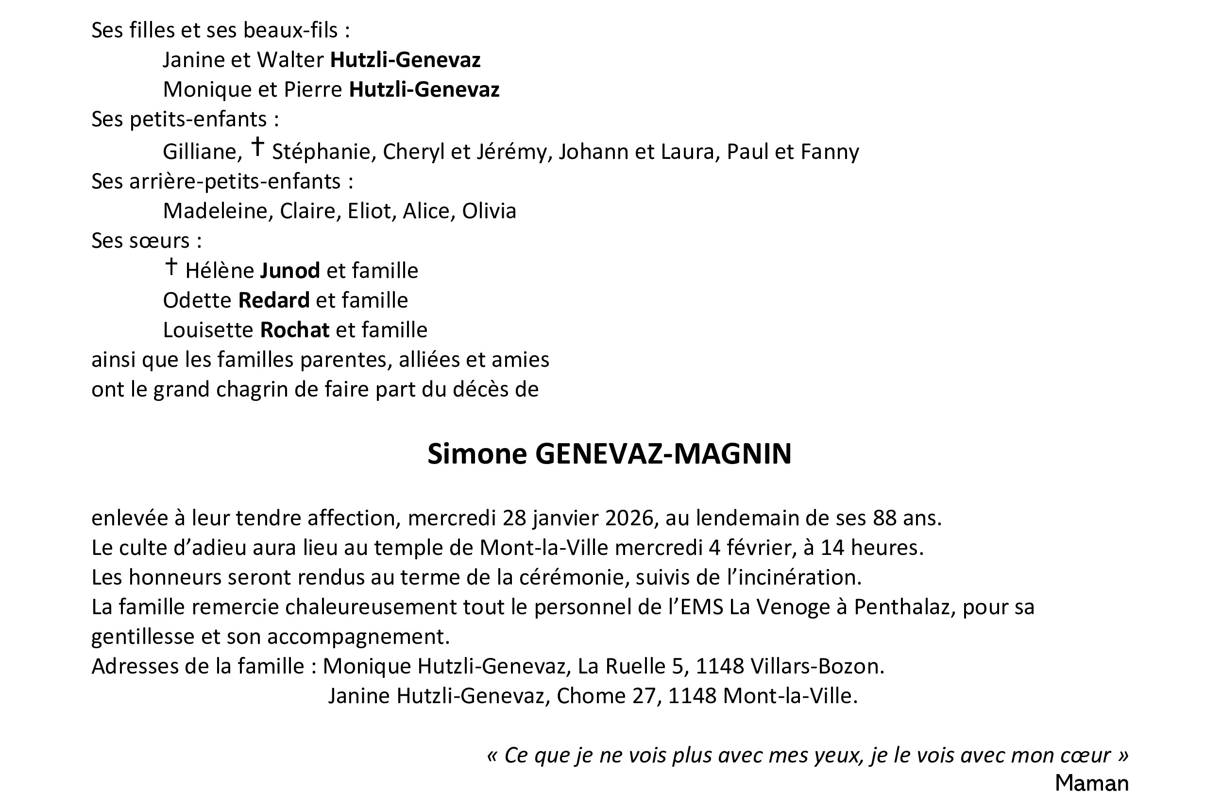 Madame Simone GENEVAZ-MAGNIN
