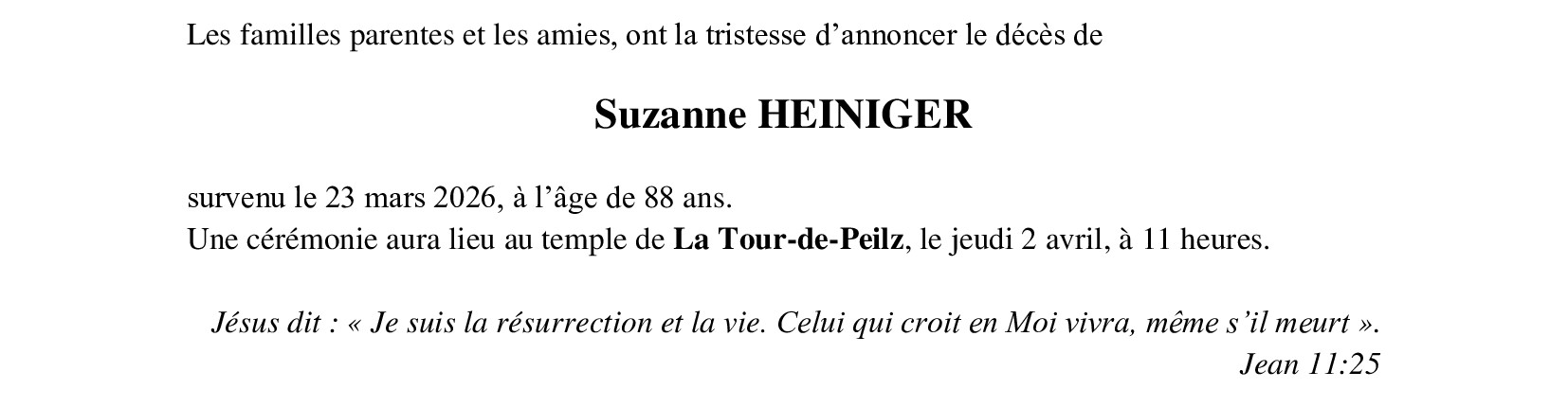 Madame Suzanne HEINIGER