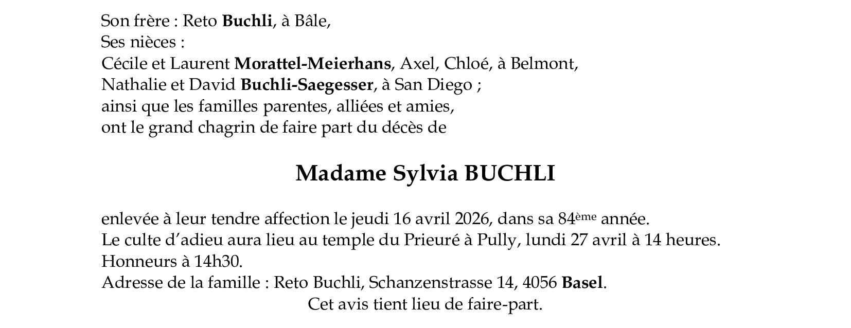 Madame Sylvia BUCHLI