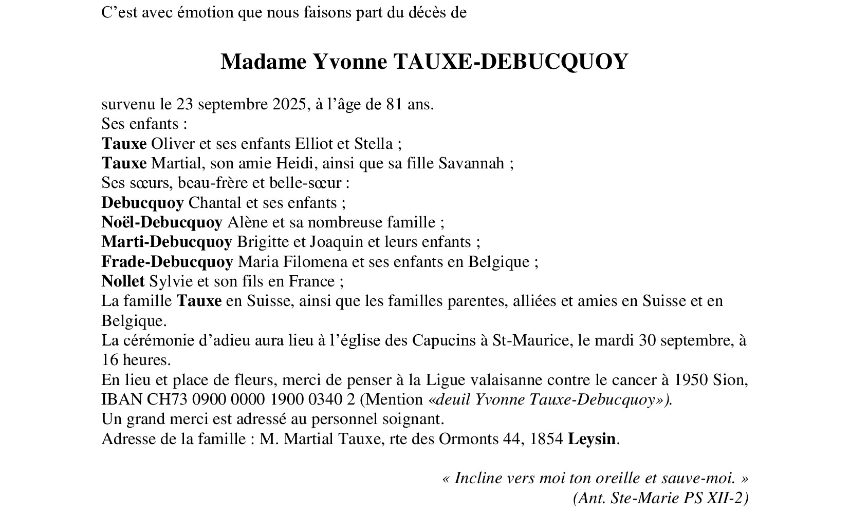 Madame Yvonne TAUXE-DEBUCQUOY