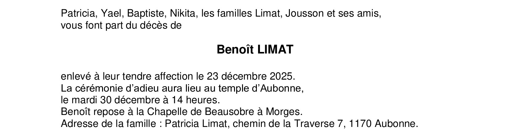 Monsieur Benoît LIMAT