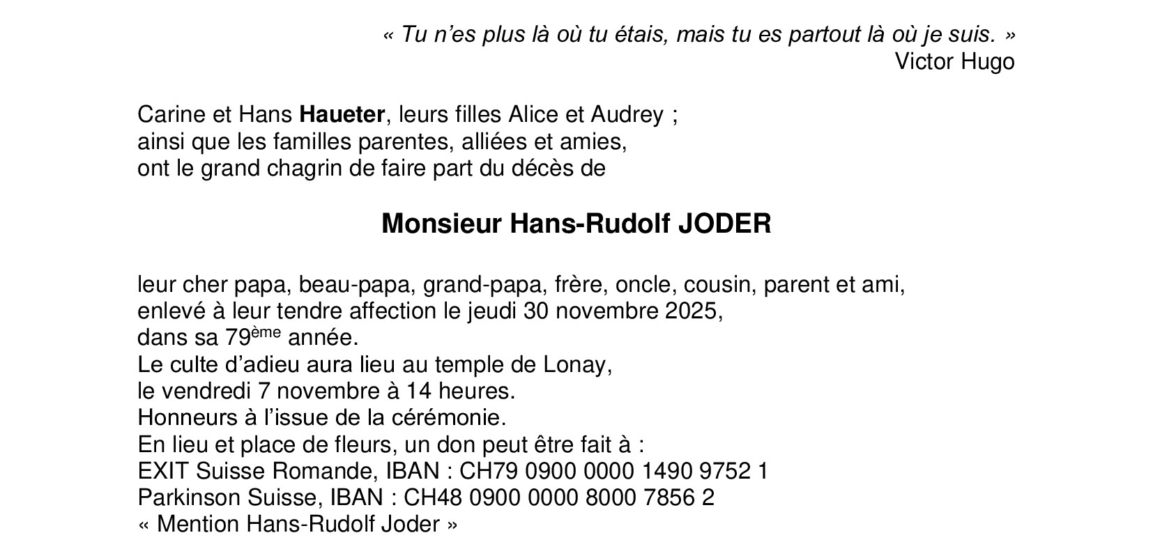 Monsieur Hans-Rudolf JODER