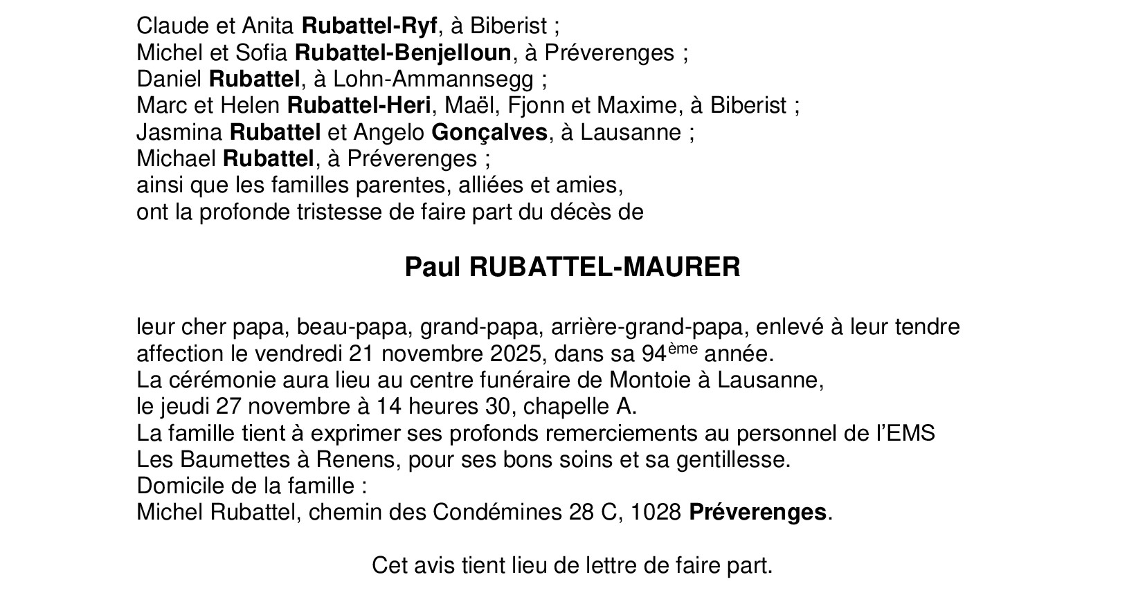 Monsieur Paul RUBATTEL